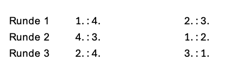 Heißt ab jetzt folgen zwei Partien mit 25min+5sek/Inkrement pro Zug, beide Spieler erhalten einmal die weißen Steine (der höher gesetzte beginnt hierbei mit schwarz), sollte es danach Unentschieden stehen folgen zwei Partien mit 10min, hiernach folgen zwei Partien mit 5min, sollte auch dies keine Entscheidung bringen, folgt eine alles entscheidende Armageddon-Partie (weiß Siegzwang).