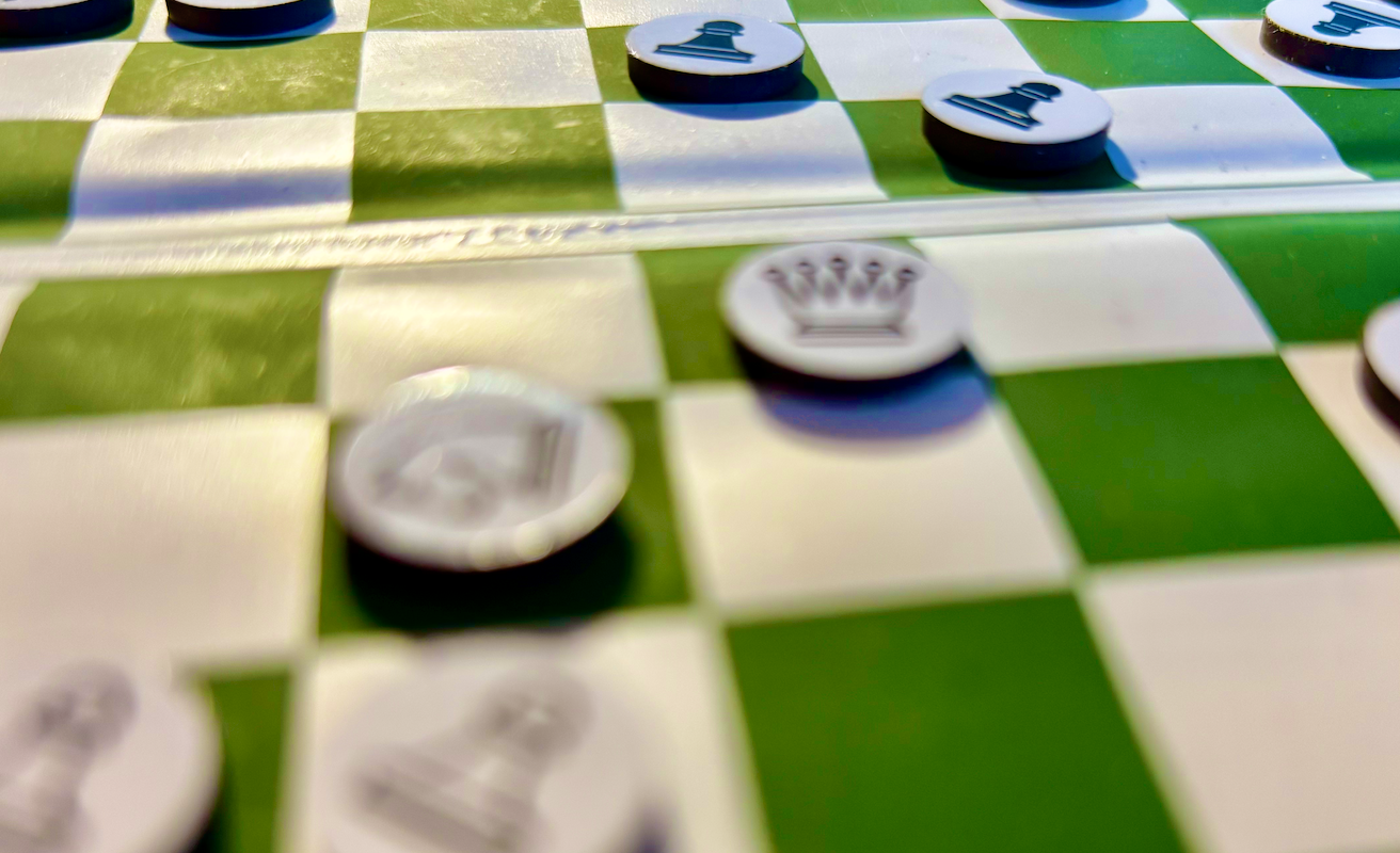 Es stand nun 3:2 für uns, und alles hing an Simeons Partie. Ein Remis hätte zum Sieg gereicht, und es sah lange gut aus. Simeon hatte in der Eröffnung nach ungenauem Spiel des Gegners einen Zentralbauern gewonnen (s. Diagramm). Im Mittelspiel opferte der Gegner dann eine Figur für die Bauern vor Simeons König. Leider fand Simeon hier nicht die beste Fortsetzung, und der Gegner hätte ins Remis durch Dauerschach entschlüpfen können. Aufgrund des Gesamtstands musste er aber weiterspielen, und Simeon spielte mit einer Figur mehr weiter. Allerdings blieb die Stellung schwierig. Simeon hatte einen offenen König, und nach dem Abtausch der Damen musste er am Königsflügel gegen drei verbundene Freibauern kämpfen. Im Endspiel fand er leider mehrmals nicht den besten Zug, und mit dem Verschwinden des letzten Bauern verschwand auch die letzte Siegchance. Als der Gegner kurz darauf auch noch die Springer abtauschen konnte, war Simeon mit einem Läufer gegen drei Freibauern auf beiden Flügeln machtlos und musste schließlich aufgeben.